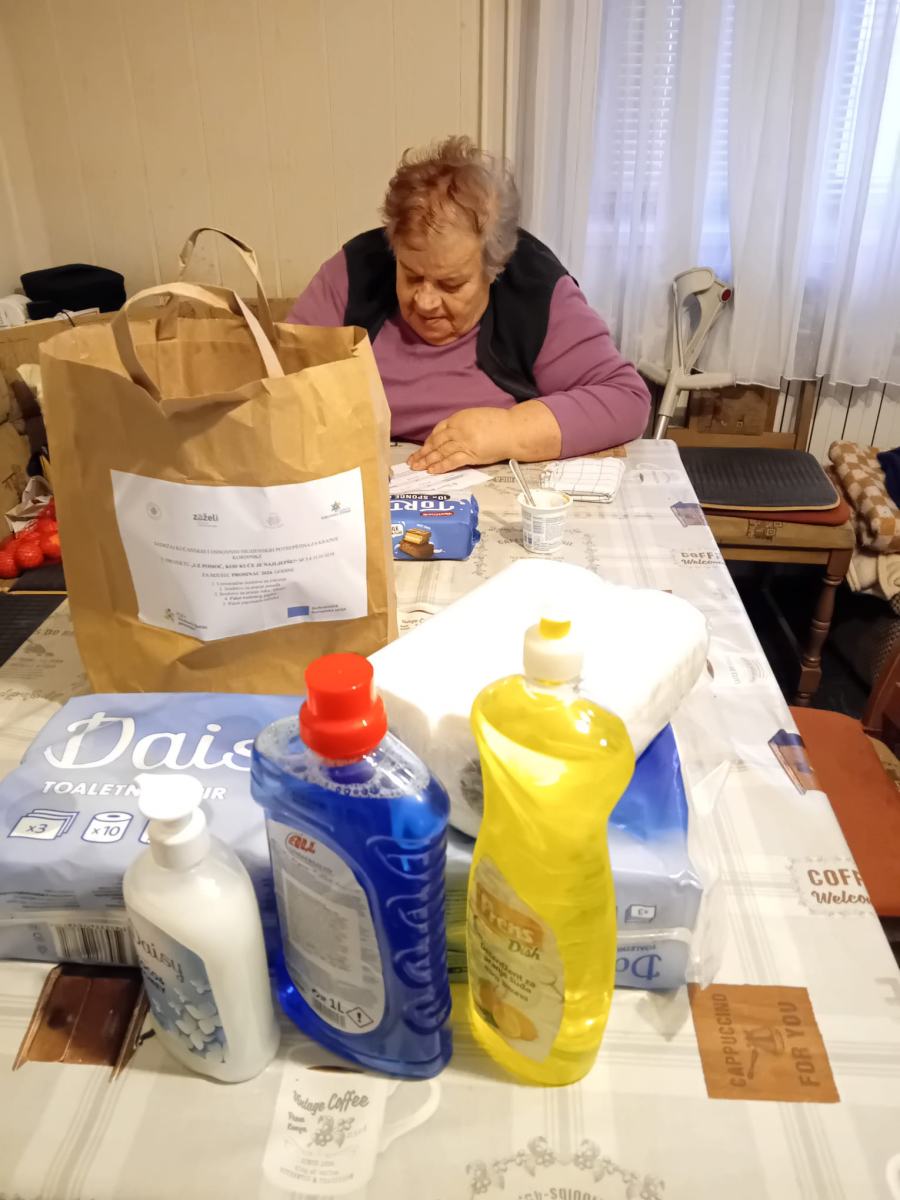 U prosincu 2024. godine paket je sadržavao: univerzalno sredstvo za čišćenje, paket toaletnog papira, paket papirnatih ručnika, sredstvo za pranje ruku-tekući te sredstvo za pranje posuđa. Za mjesec prosinac 2024. godine naručeno je ukupno 112 paketa kućanskih i osnovnih higijenskih potrepština za krajnje korisnike. Zaposleni pružatelji usluge podijelili su svih 112 paketa krajnjim korisnicima. Krajnji korisnici su svojim potpisom potvrdili primitak paketa za mjesec prosinac 2024. godine.