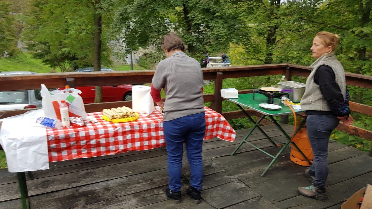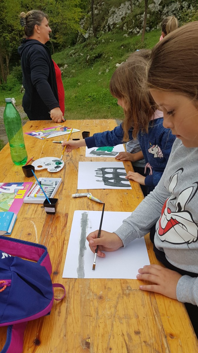 Uz zabavno i kreativno druženje u prirodi, prikaza povijesti Tounja i tounjskog mosta, poslužene su tople heljdine palačinke i voćni sokovi za naše mališane.